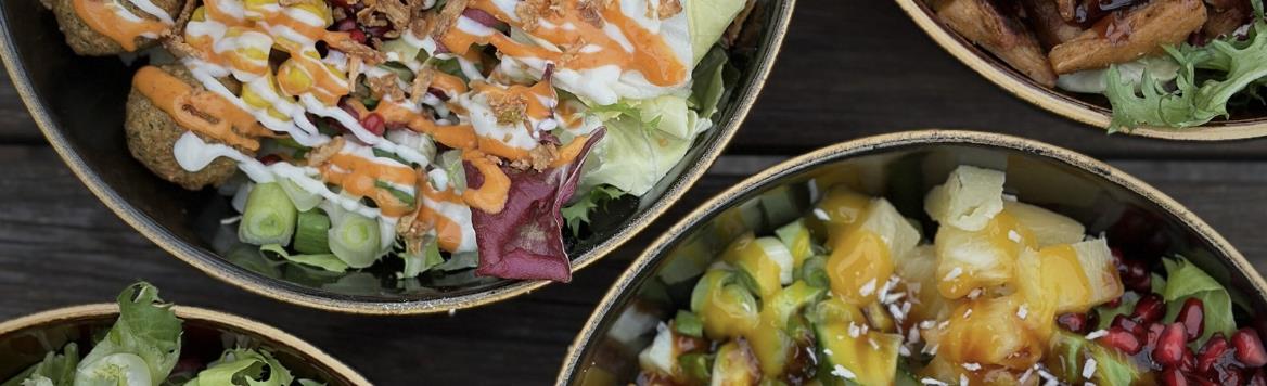 • Basis nach Wahl • 1 Protein nach Wahl • 4 Greens nach Wahl • 1 Sauce nach Wahl • 1 Crunch nach Wahl